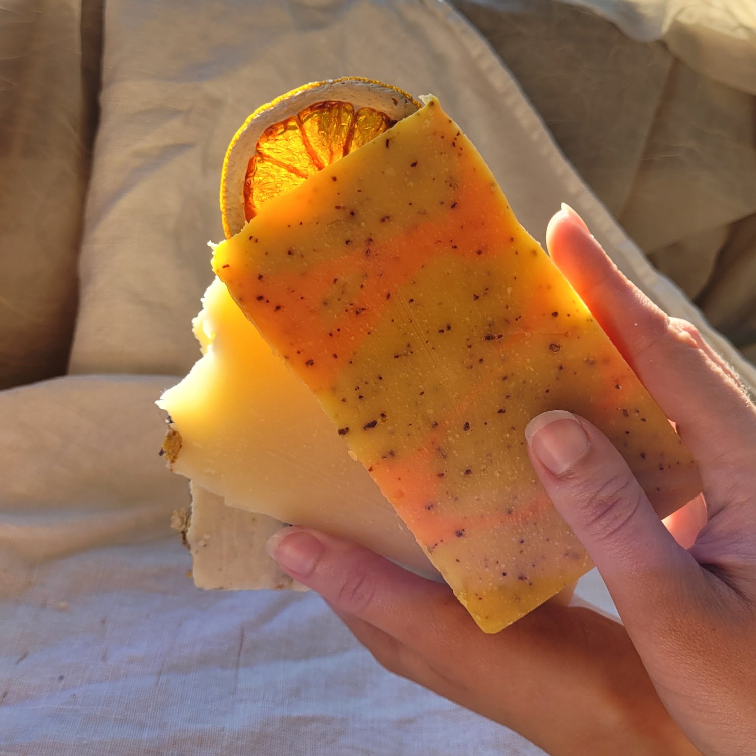 Tallow cold process soap body bars infused with prebiotic inulin from chicory root.
